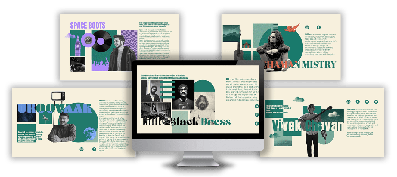 • Simple and Cohesive Designs: Crafting designs that are simple yet reflective of the artist’s individuality, ensuring that each portfolio speaks to the essence of its creator.